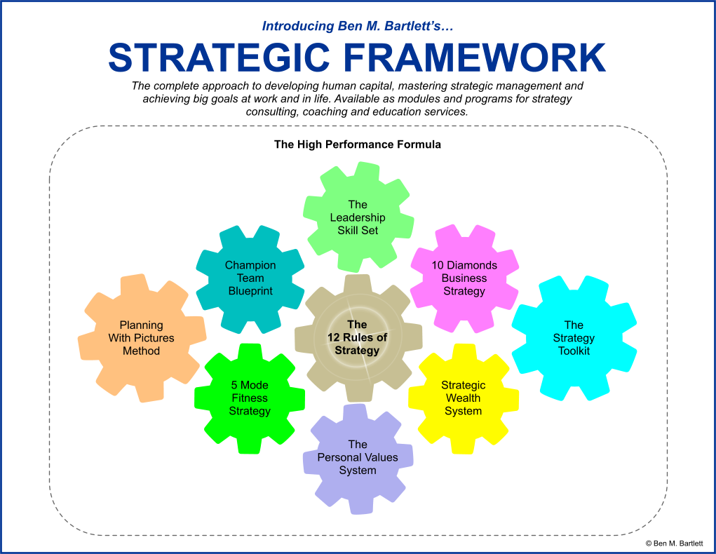 BM. Bartlett offers a portfolio of consulting, coaching and education services dedicated to advanced strategic management. And in helping teams and individuals to achieve strategic management mastery. The portfolio is based around the Advanced Strategy Framework revealed here: